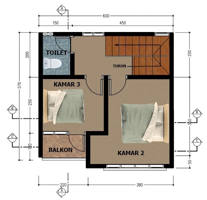 Berikut ini adalah desain Tandjung Hill’s Serpong untuk tipe 2 lantai